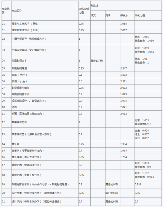 (三)录取时,学校使用的文化考试成绩为考生实际高考成绩,不含任何加分。考生文化考试成绩需达到生源省份艺术类本科专业录取控制分数线。